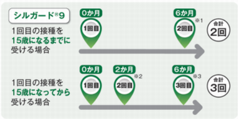 ・1回目の接種を15歳になるまでに受ける場合:2回