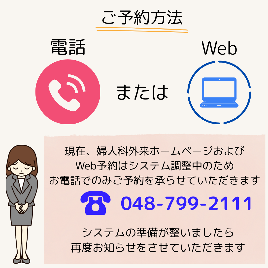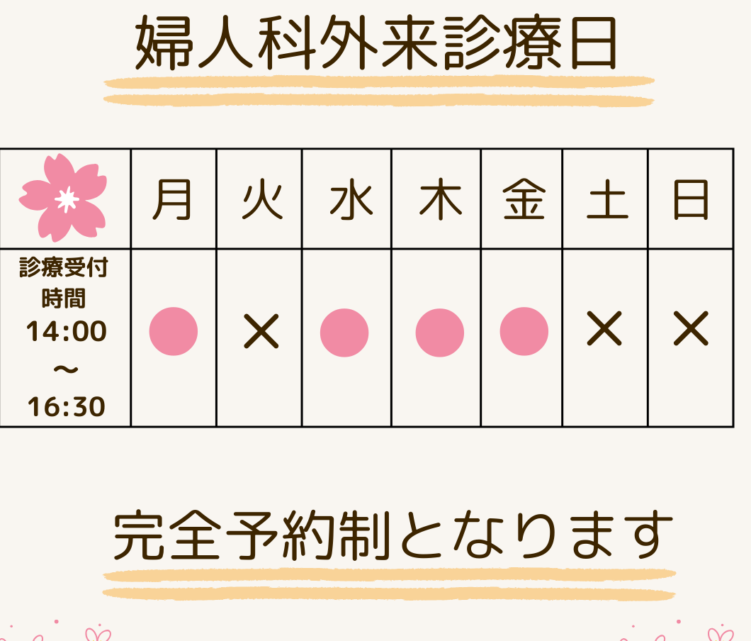 ・婦人科外来は、完全予約制となっております。患者さまの症状や内容にもよりますが、検査・診療を行いお会計終了までは一定の時間がかかります。
